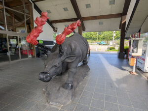 ここは平安時代末期に源義仲が平家軍と戦った「倶利伽羅峠の戦い」の舞台だ。義仲が使ったとされる「火牛の計」。牛の角に松明をくくりつけて敵陣に突っ込ませるというやつだ。今考えても豪快すぎる作戦である。