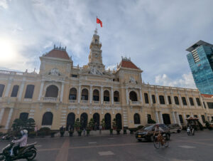 工事中のノートルダム寺院から人民委員会庁舎を回ってもらい、慌ただしく撮影。市民ホールも回って、運転手さんは「次はうまいフォーでも案内しようか」と提案してくれた。さすがにそんな時間はないし、さっき食べたばかりなので断ったが、気になるな、その店。